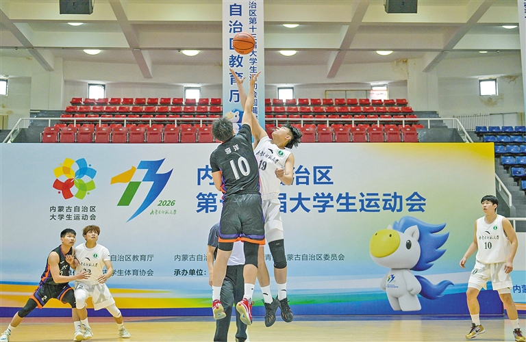 內蒙古自治區第十三屆大學生運動會籃球項目比賽。本報記者 王磊 攝
